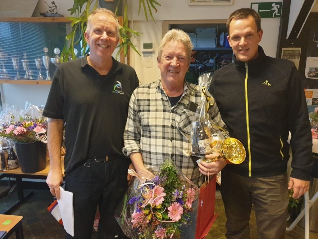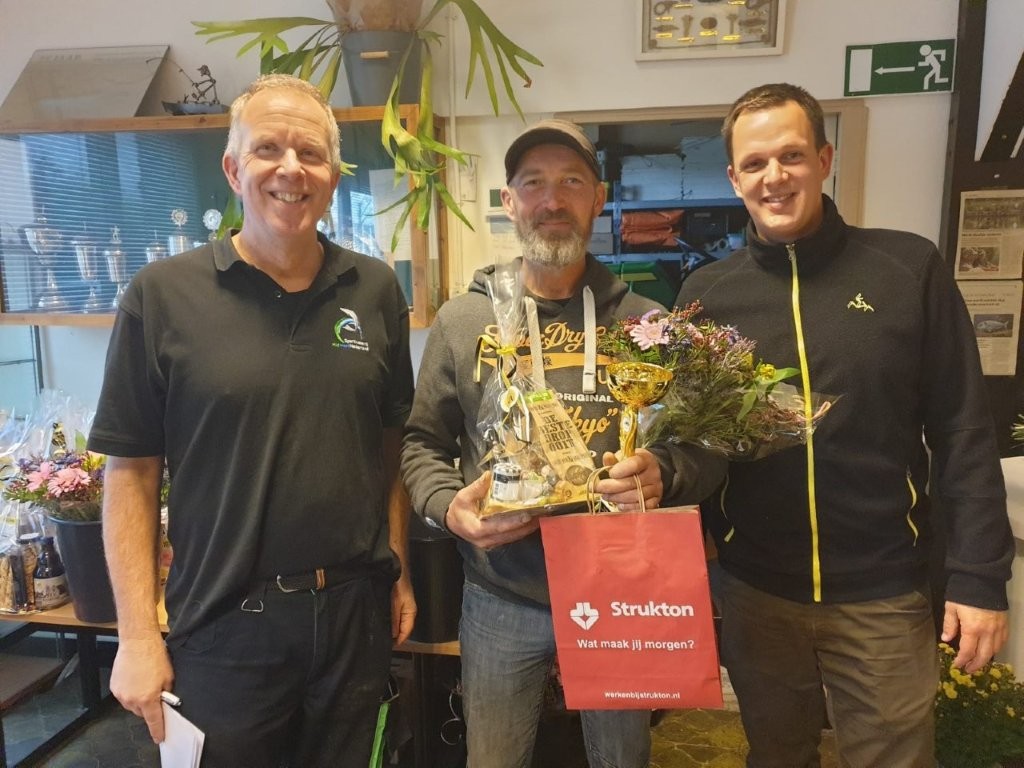 De Winnaar van 2023, 2024 en 2025 rechts met het bord en organisator Marcel Kok.